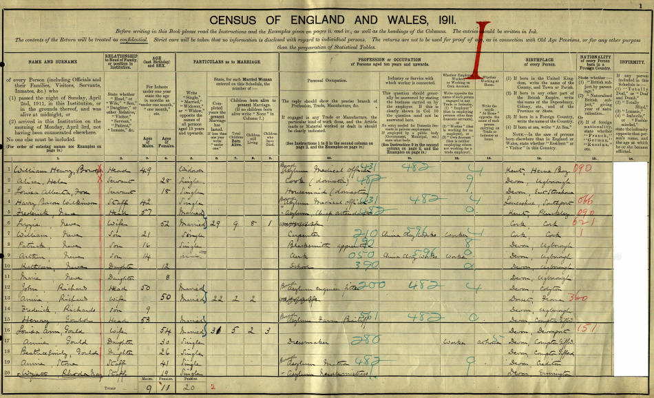 1911 CENSUS: Page - 1 • 2 • 3 • 4 • 5 • 6 • 7 • 8 • 9 • 10• 11 • 12 • 13 • 14 • 15 • 16 • 17